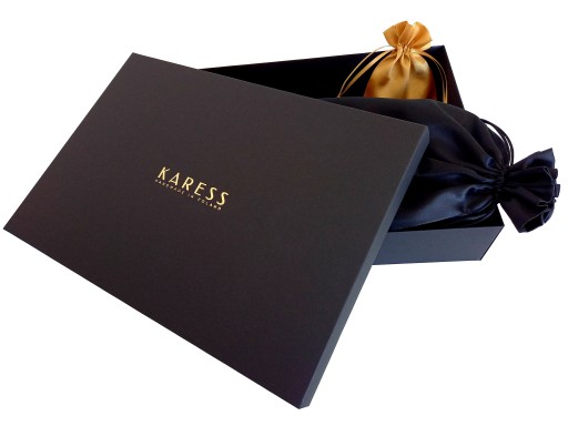 - Logotyp KARESS w kolorze złotym wytłoczony od wewnątrz.