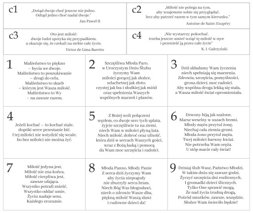- 9 przykładowych tekstów (tekst 1-9) oraz 4 przykładowe cytaty (c1-c4)