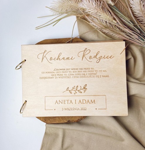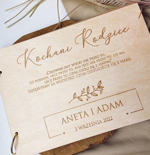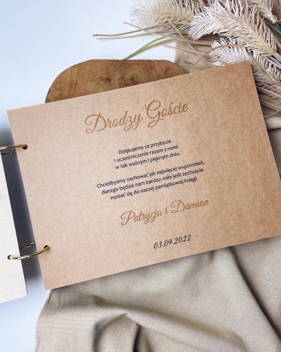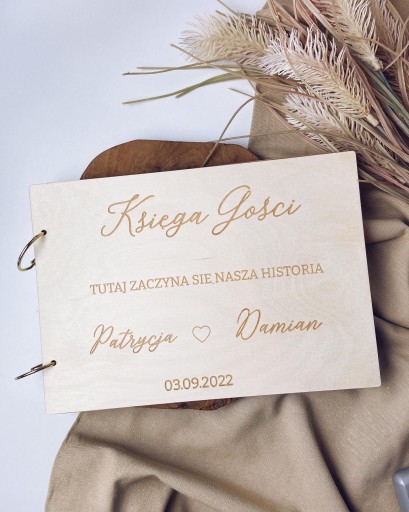 Drewniana, spersonalizowana księga gości będzie wspaniałą pamiątką z Waszego wielkiego dnia.