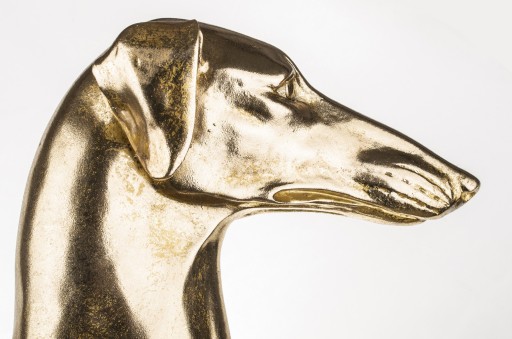 Imponująca swoimi rozmiarami figurka z postacią psa do dekoracji wszelkiego rodzaju pomieszczeń: salonu, przedpokoju, gabinetu, salonu piękności. Zachwycające wzornictwo (idealne odwzorowanie sylwetki zwierzątka), ogromne gabaryty, nowoczesna, złocista, przecierana powłoka. Nasza oryginalna figurka psa nie pozostanie niezauważona, gdziekolwiek jej nie postawisz.