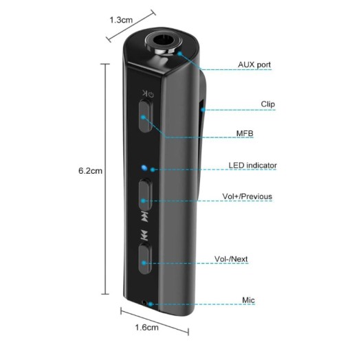 Przenośna konstrukcja. Odbiornik audio Bluetooth z innowacyjną i jedyną w swoim rodzaju konstrukcją klipsa może zabrać Cię wszędzie tam, gdzie tylko chcesz, nigdy nie musisz się martwić o utratę jego ponownie.