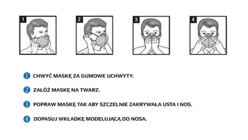 - Pozostałą częścią maski dokładnie przykryć dolną część twarzy.