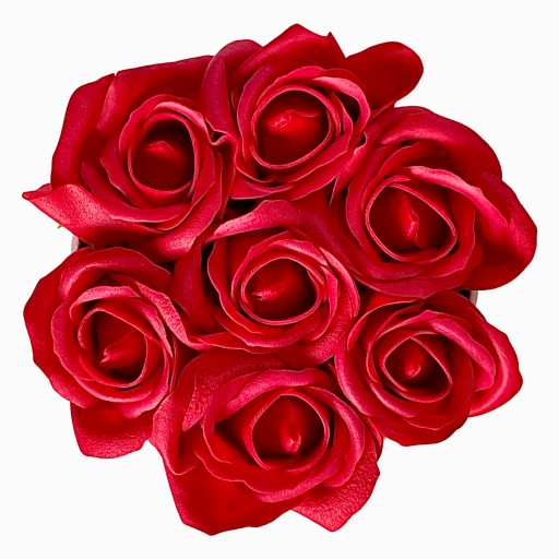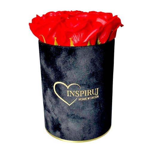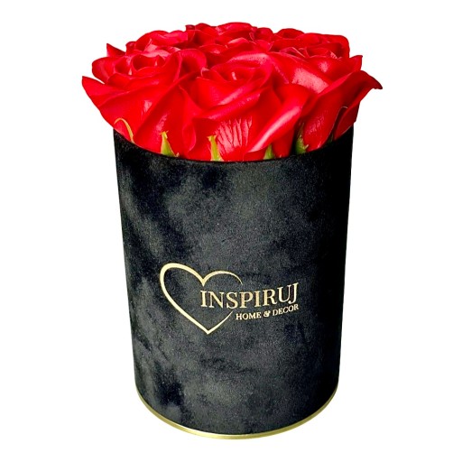 4️⃣ Kolor: Czarne pudełko z czerwonymi różami mydlanymi.