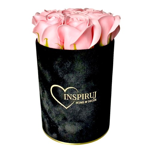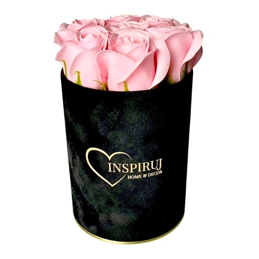 4️⃣ Kolor: Czarne pudełko z jasno-różowymi różami mydlanymi.