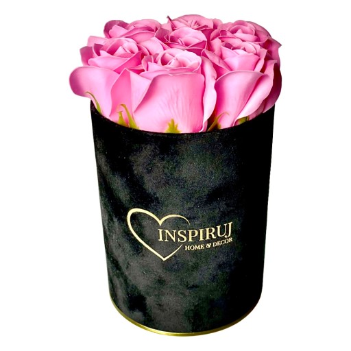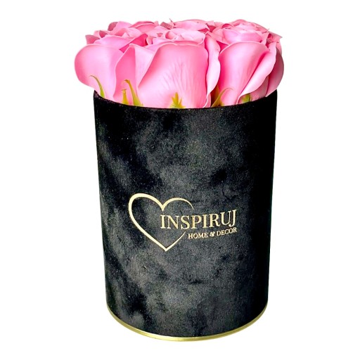 4️⃣ Kolor: Czarne pudełko z różowymi różami mydlanymi.
