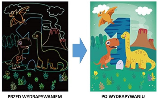☑️ W trakcie wydrapywania odkrywamy stopniowo kolorowy obrazek. Daje to dużo radości dla małego artysty (poniżej przykładowy obrazek)