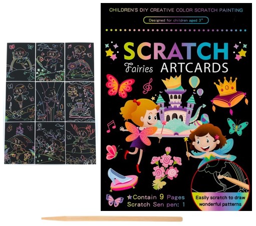 Wydrapywanka Tęczowa Wróżki 9 Arkuszy Rysik
