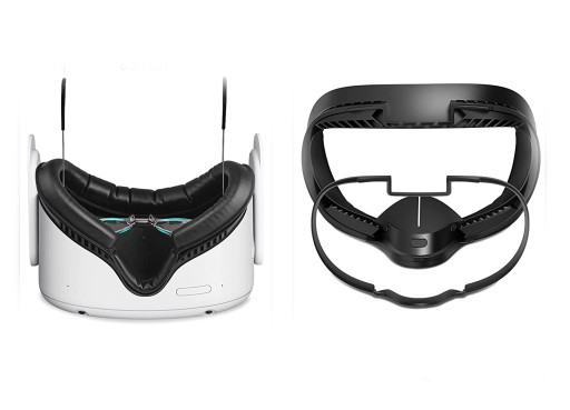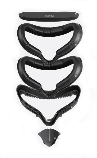 Wykonany z najwyższej jakości skóry PU, podkładka na twarz jest miękka i odporna na pot, co eliminuje obawy związane z alergią lub blaknięciem. Ponadto odporna na pot skóra chroni przed potem piankę dotykającą twarzy i utrzymuje interfejs i okulary w czystości. Oddychająca i łatwa do wycierania konstrukcja pomaga ograniczyć gromadzenie się ciepła i wilgotnego powietrza wewnątrz zestawu. Podkładkę do twarzy można łatwo zdjąć i umyć, dzięki czemu nie będziesz ciągle brudzić twarzy miesiącami nagromadzonego brudu. Ergonomiczny uchwyt pomaga stworzyć większą krzywiznę na wyściółce, dzięki czemu idealnie dopasowuje się do twarzy i zapobiega przedostawaniu się światła przez twarz.