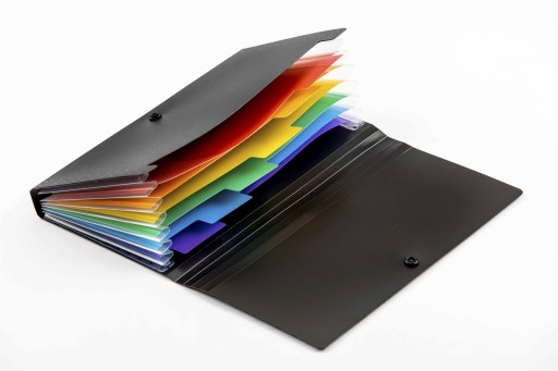 Posiada 6 kolorowych przekładek, które pozwolą na bezproblemowe segregowanie dokumentów.