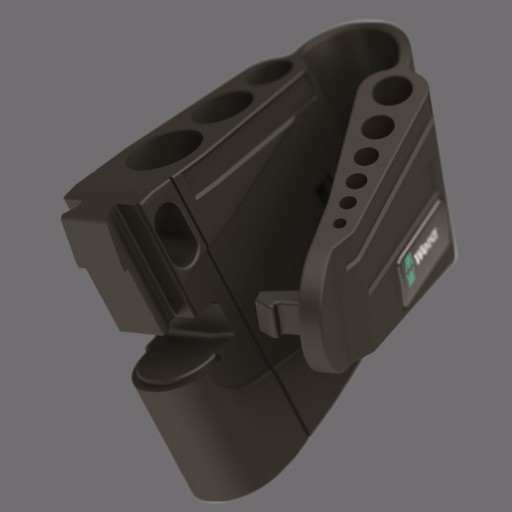 - W praktycznym uchwycie wykonanym z materiału odpornego na zużycie umożliwiającym pewny chwyt narzędzi i jednocześnie łatwe ich wyjmowanie.
