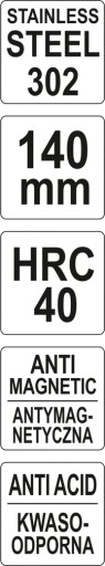 Wykonana jest ze stali nierdzewnej o symbolu 302, ponadto utwardzona do 40 HRC. Pęseta, dzięki materiałowi z jakiego jest wykonana, posiada właściwości kwasoodporne.