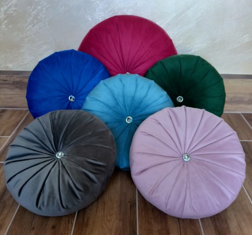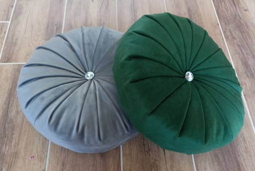 Oferujemy poduszki dekoracyjne o wymiarze 30cmx30cm w kolorze szarym. Wykończone efektownym kryształkiem lub guzikiem obleczonym materiałem w kolorze poduszki. Wypełniona wypełnieniem poliestrowym.