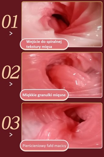 - Dwie szparki miłości wewnątrz pokryto stymulującymi wypustkami, które precyzyjnie wypieszczą Twojego penisa.