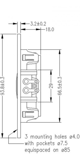 19-milimetrowy głośnik wysokotonowy High Fidelity o gładkiej, rozszerzonej częstotliwości odpowiedź. Aluminiowa membrana zawieszona na specjalnie zaprojektowanej miękkiej obudowie Sonotex co pozwala na niską częstotliwość podstawową. Formowana wtryskowo obudowa z wysokiej jakości tworzywa sztucznego wzmocnionego włóknem szklanym utrzymuje ruchome części są idealnie wyrównane i zapewniają dobre połączenie z obudową. Starannie zaprojektowany dyfuzor chroni membranę i kompensuje niewielkie osiowe odchylenie w kierunku 20 kHz. Uzwojenia cewki drgającej zanurzone w płynie magnetycznym zwiększają krótkotrwałą obsługę mocy pojemność i zmniejszyć kompresję przy wysokich poziomach mocy.