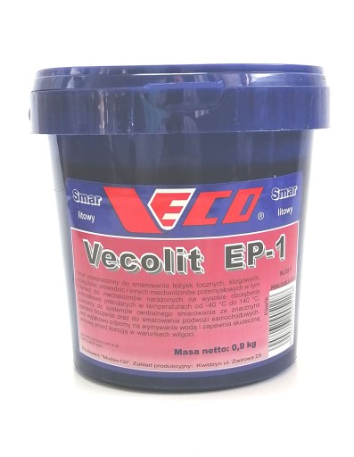 Vecolit EP-1 to wysokiej jakości smar rowerowy, przeznaczony do smarowania łożysk tocznych, np. wianków mocujących oś supportu, łożysk ślizgowych, zamkniętych przekładni w piastach wielobiegowych oraz przegubów, prowadnic i innych mechanizmów narażonych na wysokie obciążenia oraz obciążenia udarowe. Jest bardzo popularny do rowerowych przekładni planetarnych Shimano Nexus 3, 7 i 8 biegowych. Nadaje się do pracy w szerokim zakresie temperatur od –40 do 140 °C. Z powodzeniem może być stosowany w systemach centralnego smarowania, w szczególności do aplikacji wymagających użycia smaru o właściwościach niskotemperaturowych i wymagających przetłaczania smaru na duże odległości. Smar Vecolit EP-1 gwarantuje doskonałą ochronę smarowanych skojarzeń oraz znacznie obniża tarcie. Zawiera dodatki zapobiegające zużyciu i zacieraniu łożysk pracujących pod obciążeniem. Ponadto doskonale chroni łożyska i inne mechanizmy przed korozją i rdzewieniem, nawet w obecności wilgoci.