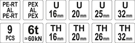 - matryce typu TH: 16 mm / 20 mm / 26 mm / 32 mm