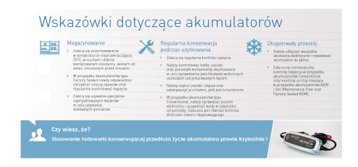 - Technologia maty szklanej Absorbent Glass Mat (AGM), która umożliwia nieustanne cykle rozładowania i ładowania bez najmniejszego uszczerbku na jakości pracy akumulatora.