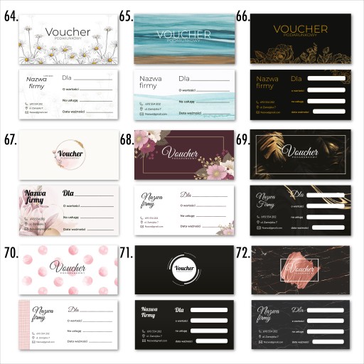 - NIE DZIELIMY NAKŁADU, np. kupując 500 szt. voucherów zamawiasz 500 szt. jednego wzoru/projektu