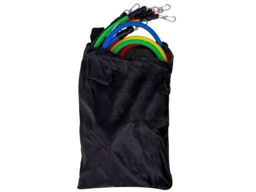 - METALOWE ŁĄCZENIA- gumy oraz uchwyty zostały wyposażone w metalowe zapinki gwarantujące wytrzymałość oraz bezpieczeństwo podczas ćwiczeń.
