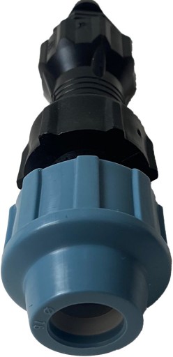 - Przelot na wcisk do linii kroplującej o średnicy 16 mm z gwintem zewnętrznym 3/4" z rozdzielaczem dwudrożnym.