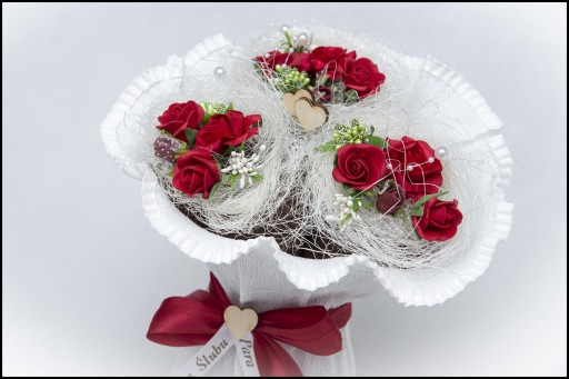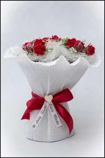 Nasz bukiet świetnie sprawdzi się jako upominek na każdą okazję np. Ślub, Dzień Matki, Babci, Dzień Kobiet lub Nauczyciela.