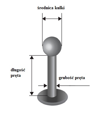 Wymiary: grubość 1,2mm, długości pręta 6mm, zakończony kulką o średnicy 3mm.