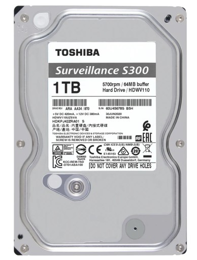 - 1x Dysk twardy do CCTV - Toshiba S300 1TB
