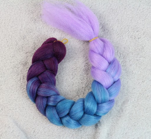Włosy syntetyczne w przepięknym wariancie kolorystycznym -ciemnofioletowo-niebiesko-fioletowym. Wykonane z puszystego poliestru.