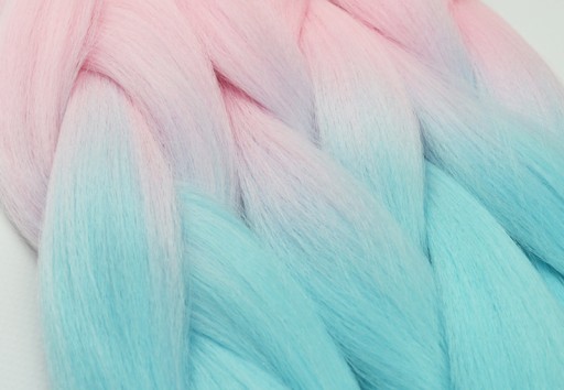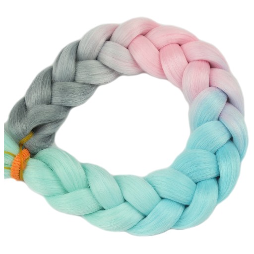 Włosy syntetyczne w przepięknym wariancie kolorystycznym -szaro-różowo-niebiesko-zielony. Wykonane z gładkiego i przyjemnego w dotyku henlonu.