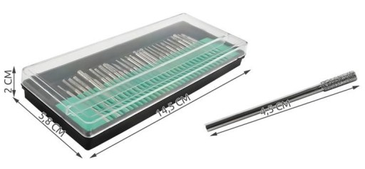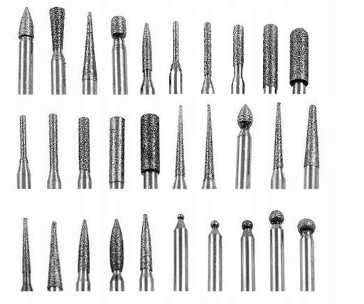 Zawiera frezy o najróżniejszych kształtach, przeznaczone do różnych zadań.