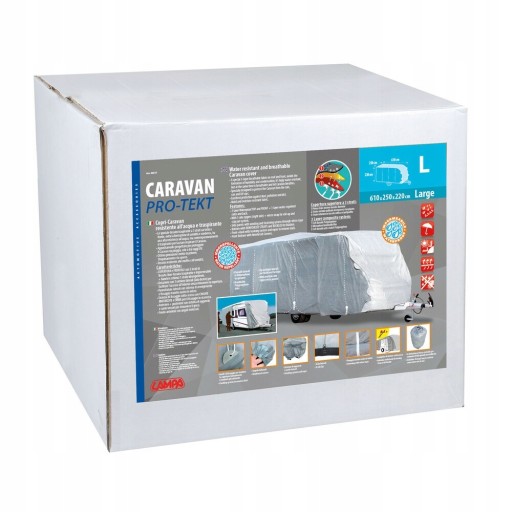 Pokrowiec ochronny idealny na okresy przechowywania przyczep kempingowych, ale może być również używany jako ochrona przed ekstremalnym upałem.