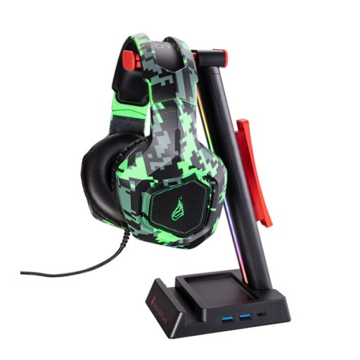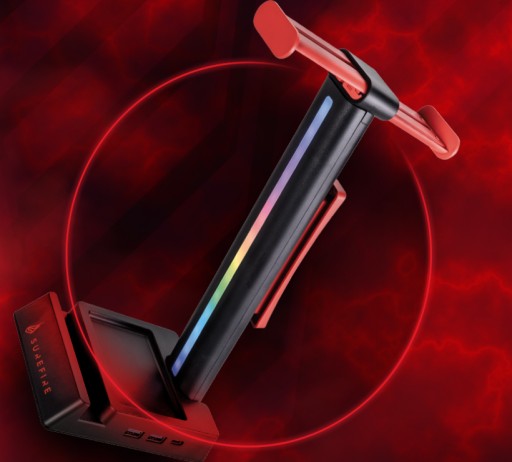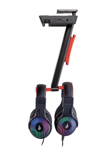 PODWÓJNY STOJAK Z PODŚWIETLENIEM RGB I KONCENTRATOREM USB NA GAMINGOWY ZESTAW SŁUCHAWKOWY SUREFIRE VINSON N2 CZARNY