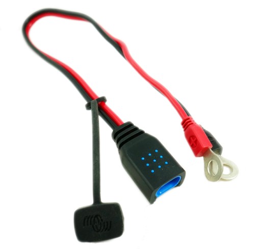 Do ładowarki dołączone są zaciski krokodylkowe oraz końcówki oczkowe M8, które umożliwiają łatwe podłączenie do akumulatora. Końcówka umożliwia proste podłączenie trudno dostępnego akumulatora np. pod siedzeniem, w bagażniku itp.