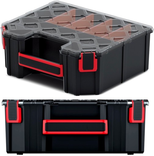 - W organizerze bez problemu zmieści się sporo niewielkich akcesoriów warsztatowych takich jak śrubki, nakrętki, gwoździki.