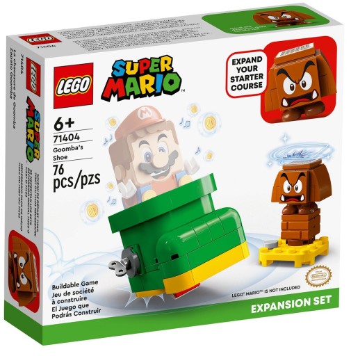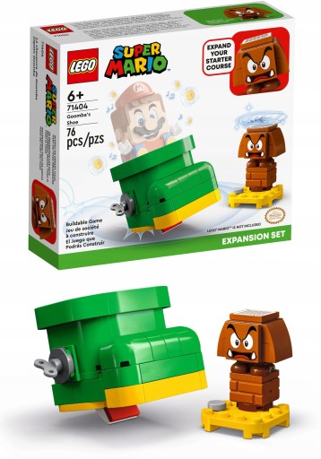 Zestaw But Goomby — zestaw rozszerzający (71404) pozwala dzieciom w wieku od sześciu lat przeżywać niesamowite przygody w świecie LEGO® Super Mario™. W komplecie są zbudowany z klocków but Goomby oraz figurka LEGO Goomby do urozmaicenia poziomów tworzonych przez dzieci. Pomóż LEGO® Mario™, LEGO® Luigiemu™ lub LEGO® Peach™ (figurki nie są częścią zestawu) zabrać but, a potem wskocz do niego i rób salta, aby zdobywać cyfrowe monety. (Uwaga: do interaktywnej zabawy wymagany jest zestaw startowy 71360, 71387 lub 71403).
