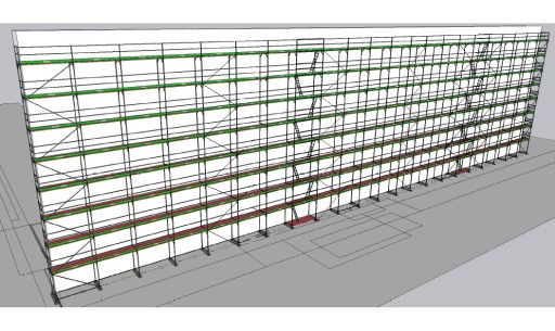 Górna poprzeczka posiada 8 bolców ,,gwiazdkowych” do mocowania pomostów. Konstrukcja ramy zapewnia również montaż poręczy z obu stron i stężenia pionowego podłużnego.