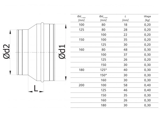 - Redukcja symetryczna nyplowa 180mm na 160mm - RPC-180-160