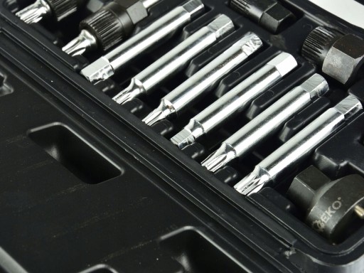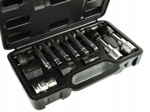 Zestaw kluczy do montażu i demontażu alternatorów. Klucze wykonane zostały z wysokogatunkowej stali chromowo-wanadowej CrV, dzięki czemu są wytrzymałe i odporne na uszkodzenia. Klucze umożliwiają jednoczesne odkręcanie śruby mocującej koło pasowe (za pomocą odpowiedniego bitu) oraz przytrzymywanie koła ze sprzęgłem (za pomocą specjalistycznej nasadki).