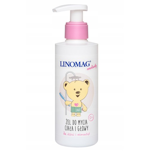 - LINOMAG® Żel do mycia ciała i głowy polecany do codziennej kąpieli dzieci i niemowląt od 1. dnia życia. Substancje aktywne stanowią połączenie łagodnych środków myjących, oleju lnianego bogatego w NNKT, w tym kwasy omega-3 i omega-6 oraz pantenolu.