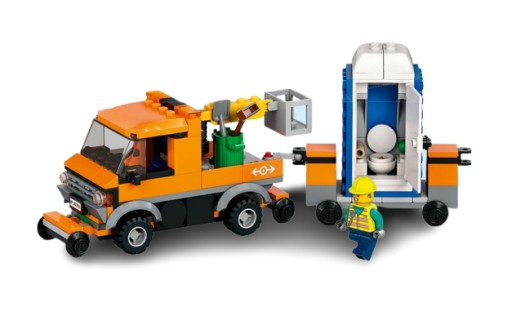 Przedmiotem aukcji jest Nowy Pojazd Szynowy z Przyczepa Oraz Toi Toi LEGO z Figurkami pochodzący z zestawu 60335