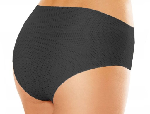 Damskie figi uszyte z delikatnie perforowanej dzianiny. Zastosowana technologia sprawia, że figi są jeszcze bardziej przewiewne, szybciej schną i zapewniają komfort na codzień ale i podczas intensywnych ćwiczeń. Idealnie dopasowane do ciała, niewidoczne pod ubraniem dzięki bezszwowej, nowoczesnej technologii wykończenia brzegów. Łączenia za pomocą ultradzwięków. Doskonale sprawdzą się na co dzień, gdyż są niezwykle lekkie i przewiewne. Posiadają higieniczny bawełniany klin.