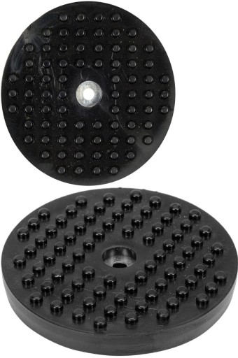 Podkładka gumowa do podnośników zabezpiecza progi lub inne elementy nośne pojazdów podczas podnoszenia. Guma odporna na działanie olejów hydraulicznych, silnikowych, paliw i smarów, a także szkodliwych warunków atmosferycznych lub chemii warsztatowej.