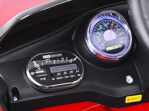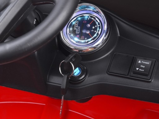 Sportowe autko posiada mocne silniki 2 x 12V 16000RPM + 2 x akumulator żelowy 6V 4,5Ah + kluczyki + PILOT dla rodzica.