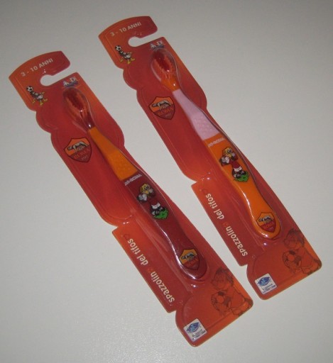 2 małe szczoteczki do zębów w barwach AS Roma. Dla dzieci. Oryginalne. Fabrycznie zapakowane. Z Włoch. Cena za komplet.