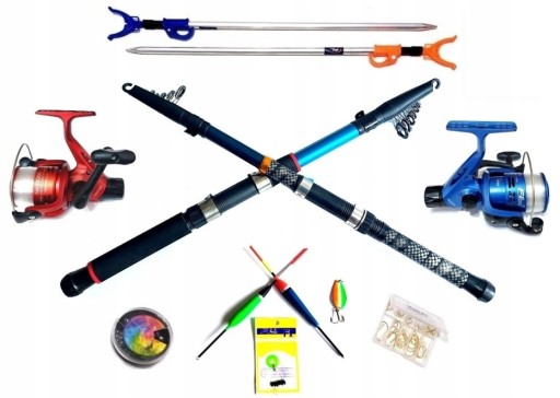 Oraz do każdego kompletu dokładamy 100 m. żyłki, pudełko ciężarków, spławik, około 70 haczyków, błystkę. Spławiki i błystkę wybieramy losowo, zależy od stanu magazynowego. Kołowrotki też dostępne w czterech kolorach - wysyłamy losowo.