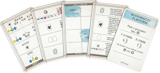 Złożyć jaja, tzn. pobrać jedno z zasobów i umieścić na karcie odpowiedniego ptaka.