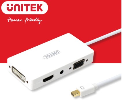 Wielofunkcyjny adapter wideo Y-6354 WH to urządzenie umożliwiające konwertowanie sygnału miniDisplay do VGA / Audio / HDMI / DVI
