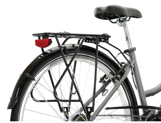 Rower wyposażony jest także w wygodną stopkę, która umożliwia postawienie roweru nawet wtedy, gdy nie ma możliwości by oprzeć go o ścianę. Dołączone błotniki zabezpieczą odzież przed zachlapaniem wodą unoszącą spod kół, a bagażnik rowerowy pozwoli na przewiezienie dodatkowego bagażu lub montaż toreb i sakw rowerowych.