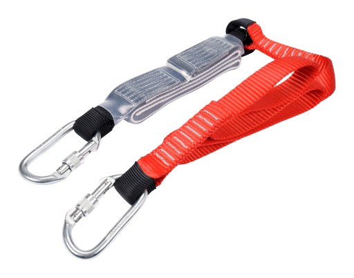 Amortyzator z taśmą poliestrową o długości 1800 mm do szelek bezpieczeństwa, przeznaczony do ochrony przed upadkiem z wysokości .
