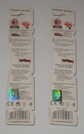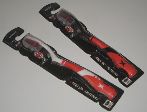 2 szczoteczki do zębów w barwach AC Milan. Oryginalne. Fabrycznie zapakowane. Z Włoch. Cena za komplet.